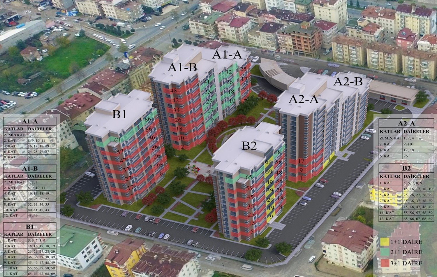 Ordu Büyükşehir Belediyesi ve TOKİ işbirliği ile Altınordu ilçesi eski kamyon garajında yapılan 311 konutluk projede, Büyükşehir Belediyesine ait olan 116 daire açık teklif usulüyle satışa sunuluyor.