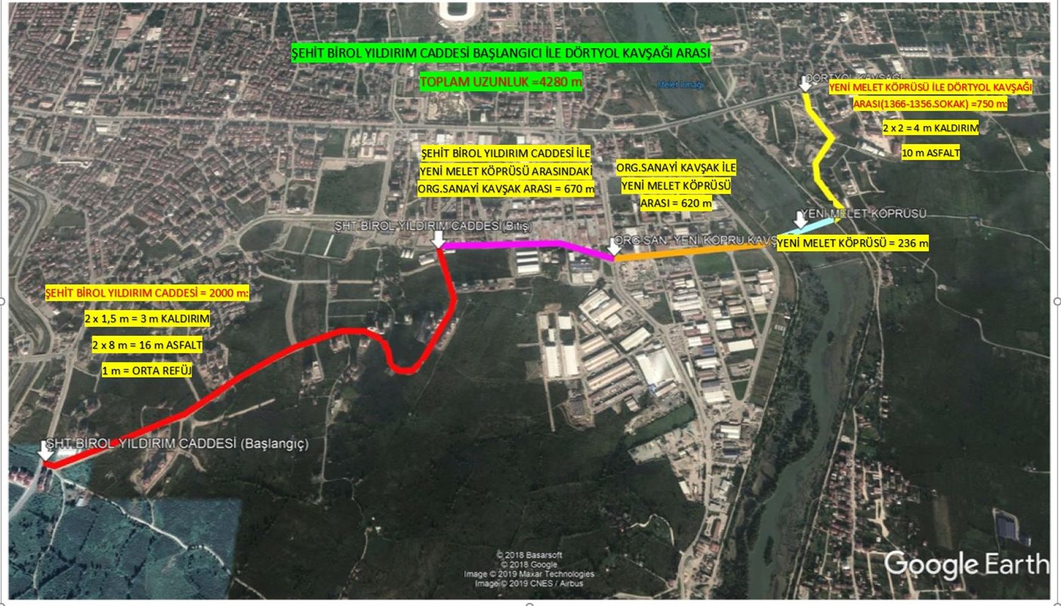Genel Sekreter Coşkun Alp, “Şehit Birol Yıldırım Caddesi’nden başlayarak Dörtyol Kavşağı’nda sonlanacak 4.280 metre uzunluğa sahip alternatif çevre yolunda ekiplerimiz hummalı bir çalışma yürütüyor. Şehit Yalçın Yamaner Bulvarı’nın trafik yükünü hafifletecek olan 2 km uzunluğundaki Şehit Birol Yıldırım Caddesi’nde asfalt dökülecek 300 metrelik bir bölüm kaldı. Ardından yolun ikinci kat asfalt serimi yapılacak. Güzergahta orta refüj ve bordür çalışması ise devam ediyor. Kaldırım yapımının ardından çalışmalar tamamlanmış olacak. Öte yandan kısa bir süre önce tamamlanan Melet Köprüsü’ne kadar olan bölümde de küçük çaplı dokunuşlarımız olacak. Projenin son kısmı olan yeni Melet Köprüsü ile Dörtyol Kavşağı arasında kalan kısımda da asfalt çalışmalarımız tamamlandı. Kısa süre içerisinde hem bu bağlantı yollarımızı hem de yeni köprüyü hizmete sunmuş olacağız. Vatandaşlarımıza hayırlı olsun” dedi.
