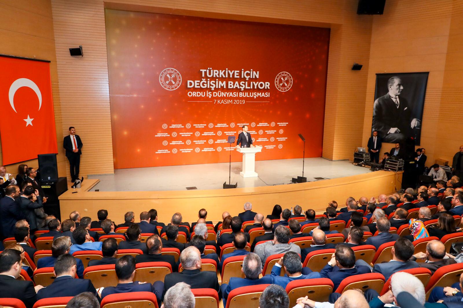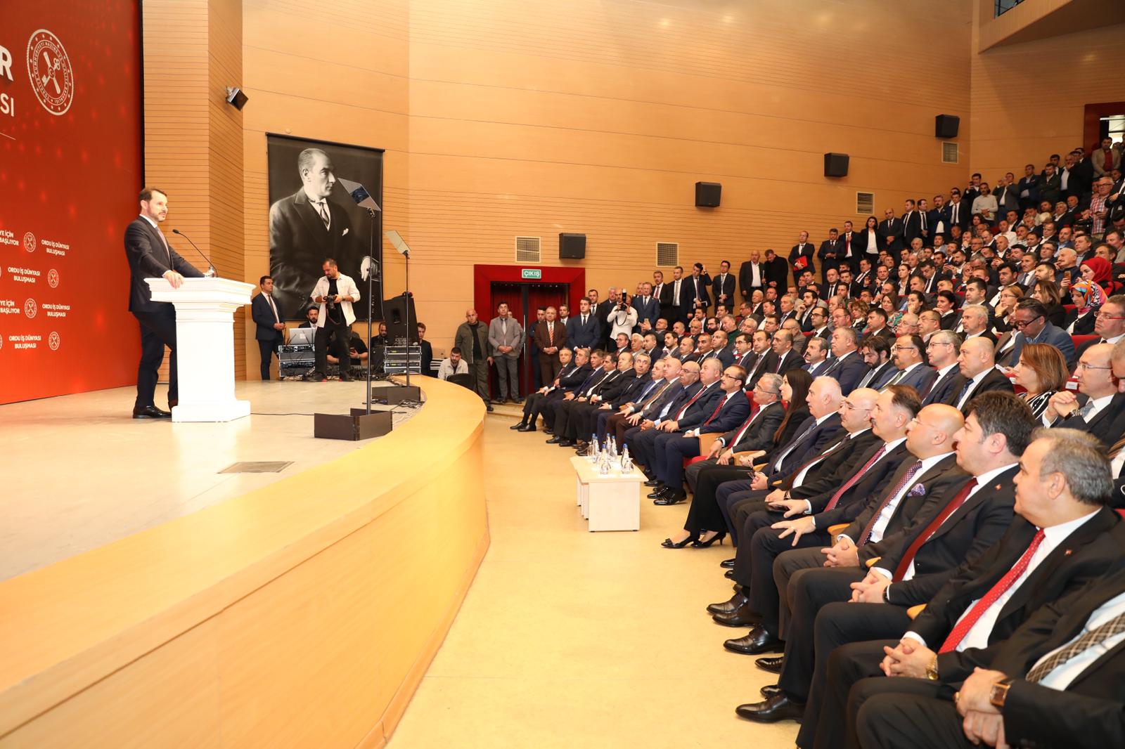Hazine ve Maliye Bakanı Berat Albayrak, Ordu Kültür Sanat Merkezi'nde düzenlenen 'İş Dünyası ile Buluşma Toplantısı'na katıldı.