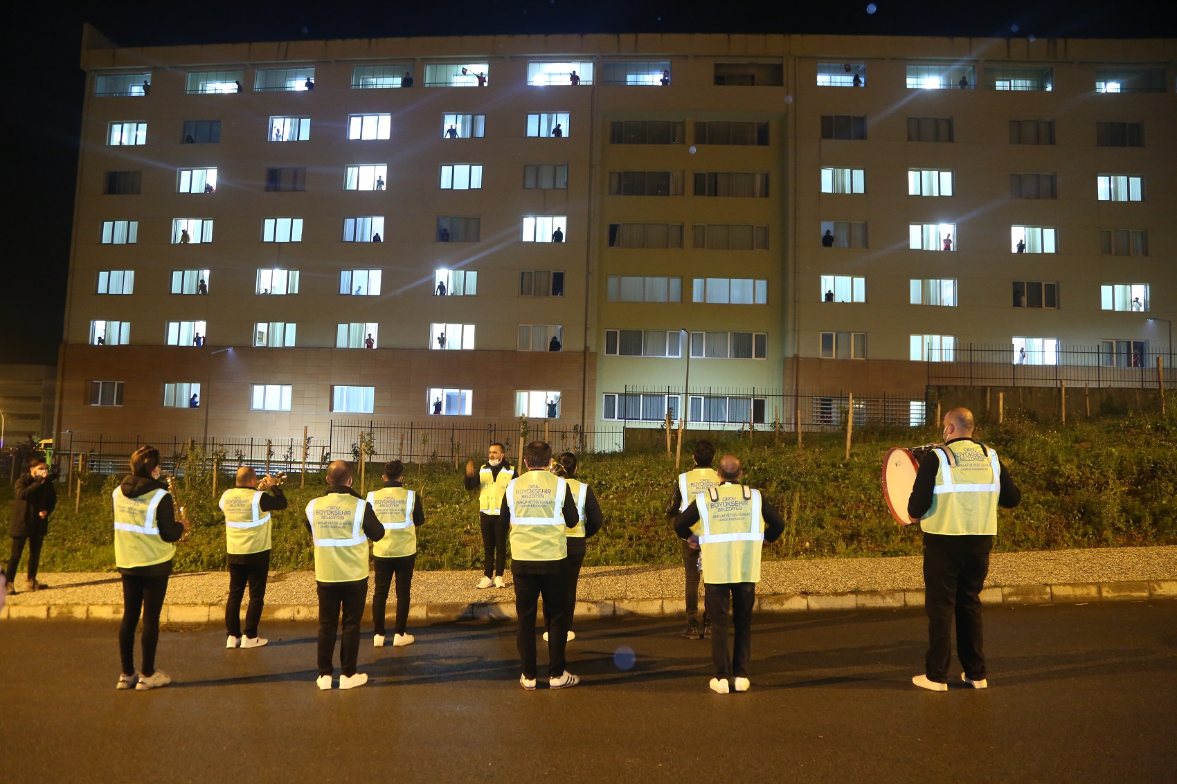 SÜRPRİZ KONSERE CAM VE BALKONLARA ÇIKARAK EŞLİK ETTİLER