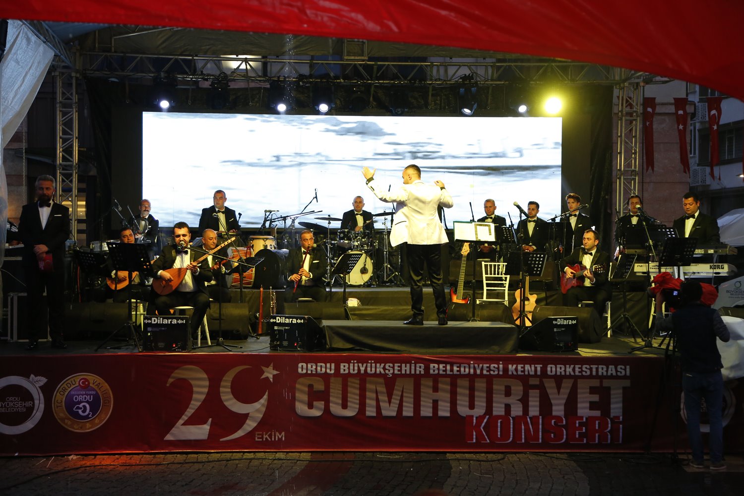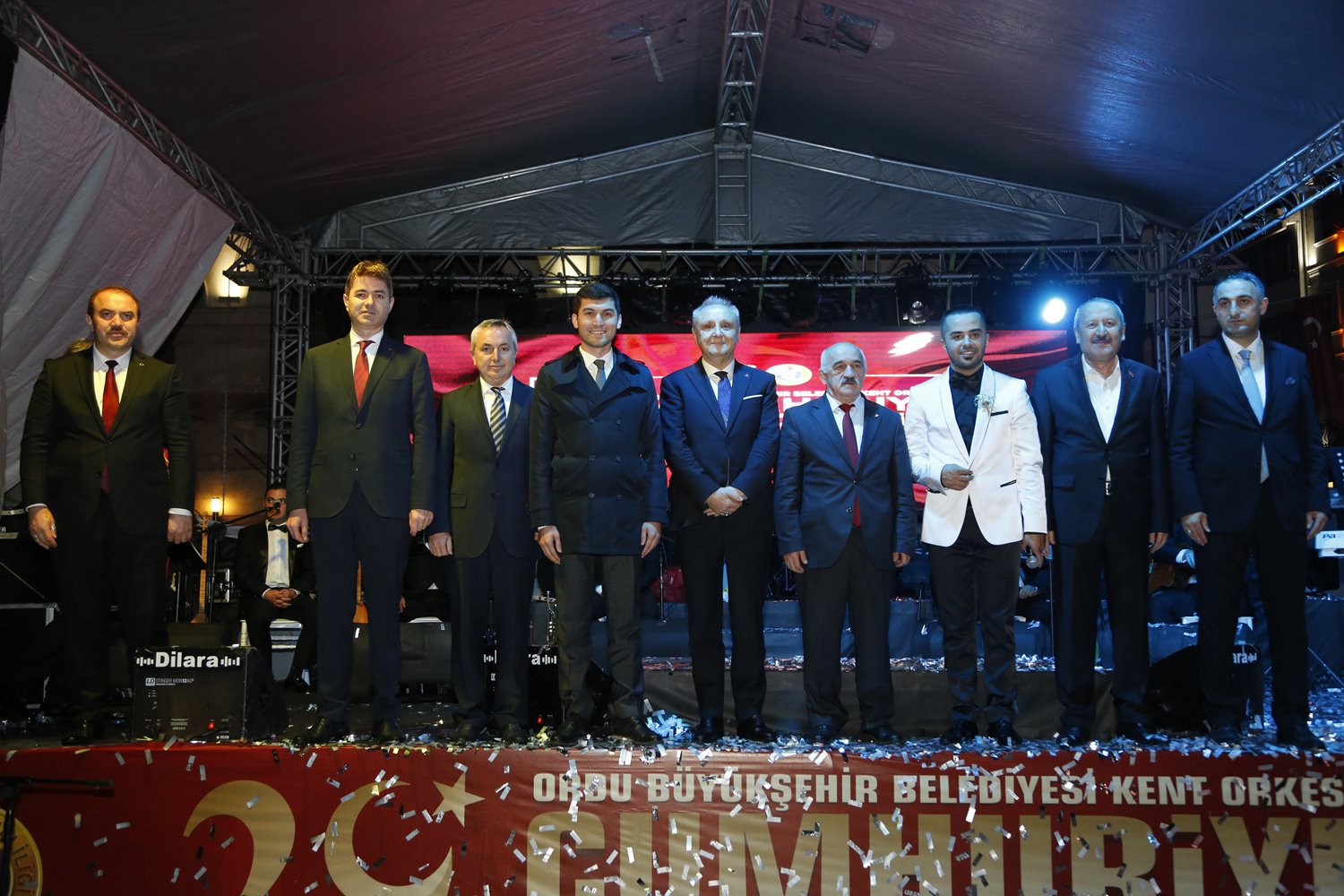 Ordu Büyükşehir Belediye Başkan Vekili Celal Tezcan, “Ordu Büyükşehir Belediye Başkanımız Dr. Mehmet Hilmi Güler Ordu’da bir eksiklik gördüğünü dile getirerek toplumun heyecanını ve duygularını özel günlerde bir araya getirilmesi amacıyla Kent Orkestrası’nın oluşturulması gerektiğini söyledi. Başkanımız yetkili kişileri talimatlandırarak Kent Orkestrasının kurulmasını sağladı. Bugün burada kent orkestrasını dinledik. Sanki 40 yıldır çalışan profesyonel bir ekip gibi konser verdiler. Her platformda müzik yapabilecek bir grup oluşturuldu. Cumhuriyetimizin 96. yıl dönümü vesilesiyle Kent Orkestrasının gerçekleştirdiği konser Sayın Büyükşehir Belediye Başkanımız Dr. Mehmet Hilmi Güler’in Ordu’ya bir armağanıdır. Bundan sonra bu orkestra bütün özel günlerde sizlerle olacak” dedi.