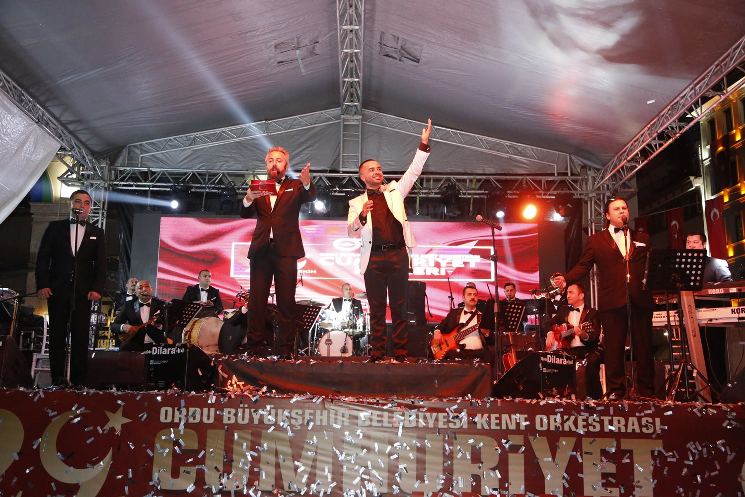 29 Ekim Cumhuriyet Bayramı'nın 96'ncı yıl dönümü dolayısıyla Altınordu ilçesi 15 Temmuz Demokrasi Meydanı’nda Ordu Büyükşehir Belediyesi Kent Orkestrası, Ordulu vatandaşlara görkemli bir konser verdi.