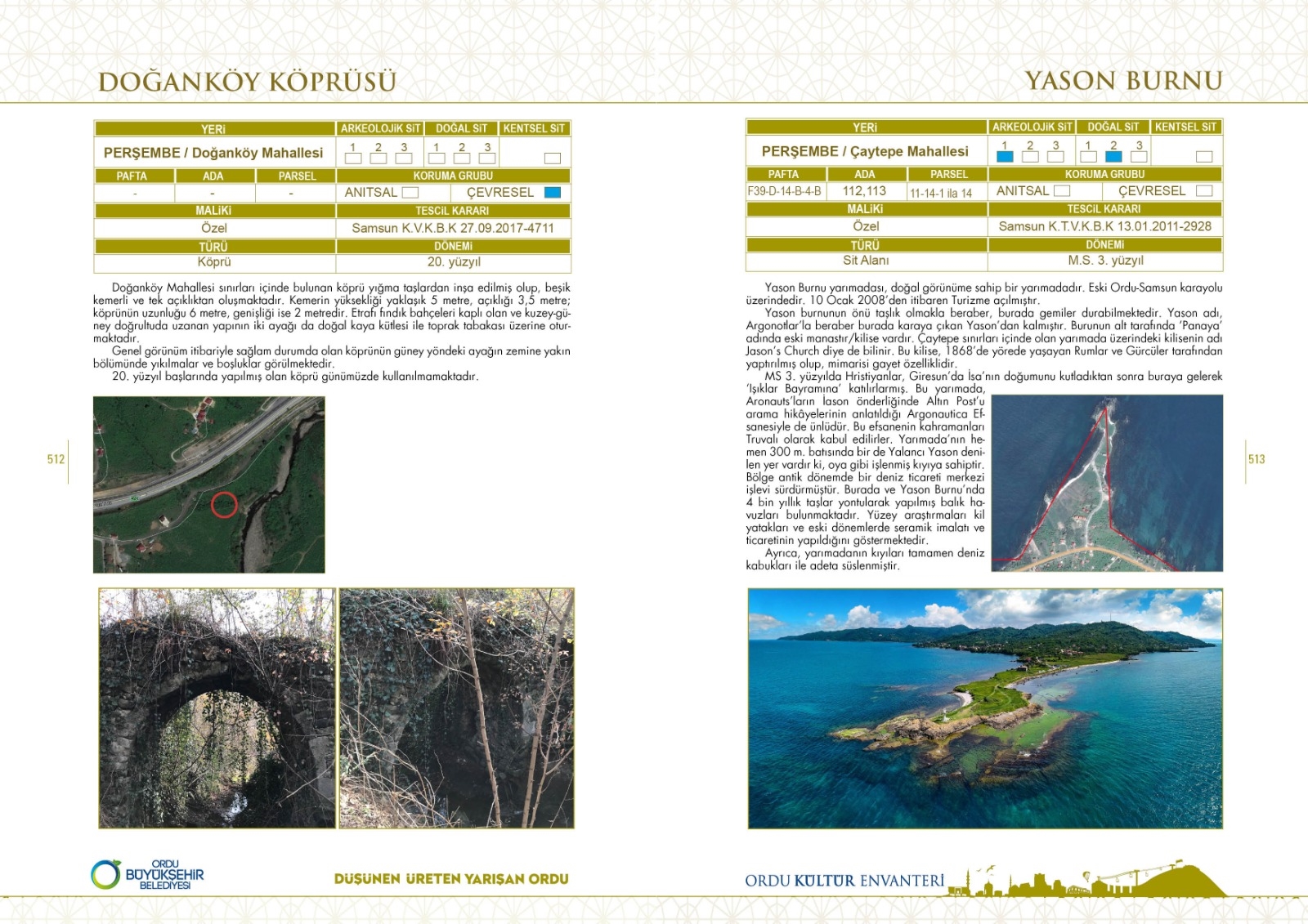695 sayfadan oluşan envanterde Ordu ili sınırları içerisinde yer alan 612 adet kültür ve tabiat varlığının fotoğraf ve bilgileri yer alıyor. Ordu ile ilgili temel eser olma niteliği taşıyan kaynak, bugüne kadar yapılan en kapsamlı taşınmaz kültür varlığı envanter çalışması olma özelliği taşıyor.