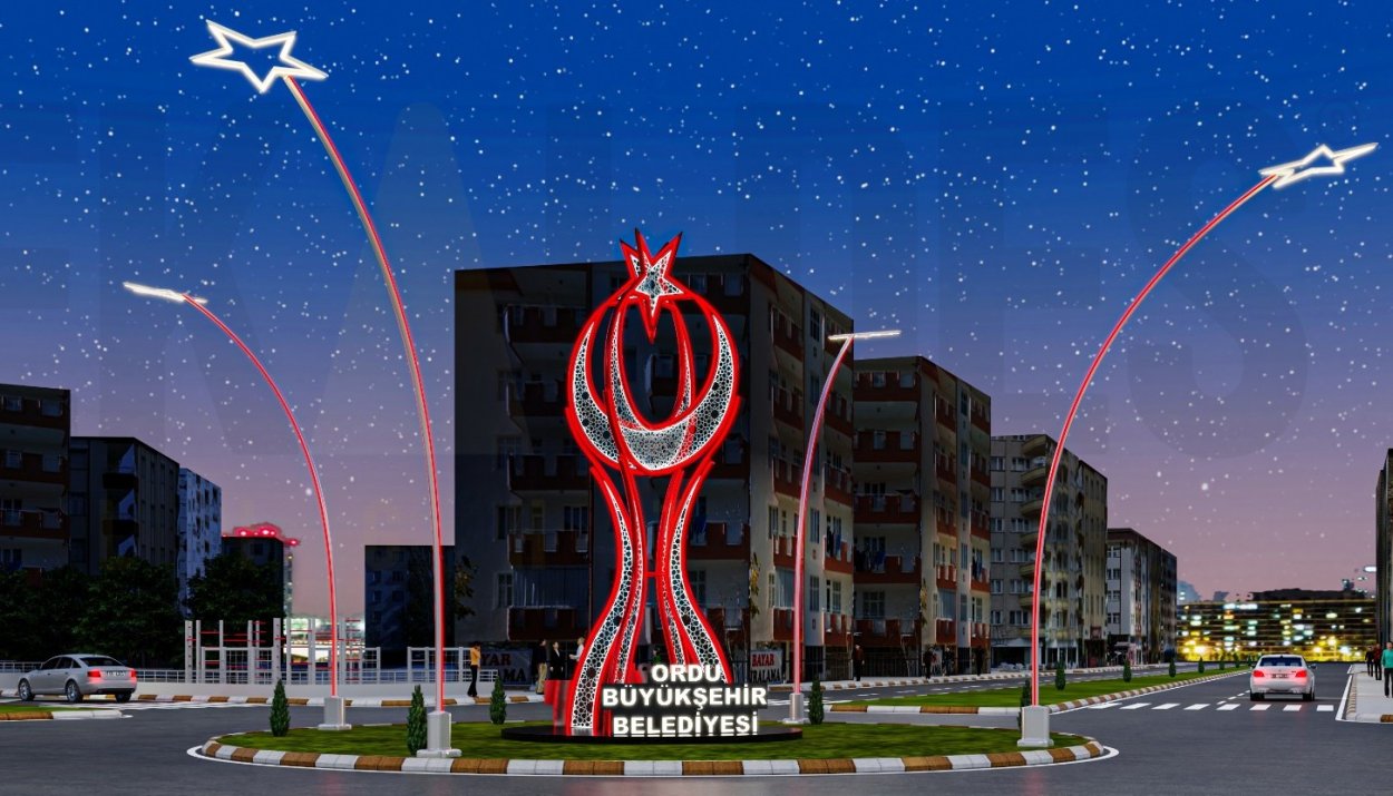 Mesudiye ilçesindeki çalışma ise Sivas-Ordu yolunun ilçe girişine düzenli bir trafik akışı sağlayan kavşakta gerçekleştirilecek. Ekipler burada ay yıldız görseli ve ledli aydınlatmaları ile ilçeye modern bir görünüm katacak olan çalışmayı hayata geçirecek.