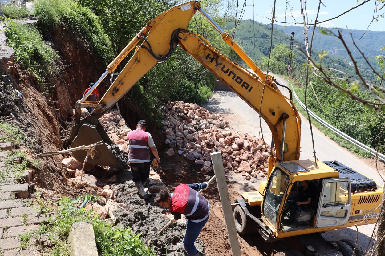 Ordu Büyükşehir Belediyesi il genelinde sürdürdüğü taş duvar çalışmalarına devam ediyor. Özellikle yoğun yağış alan Ordu’da oluşabilecek toprak kaymalarında ulaşım hizmetlerinin aksamaması, yolların hasar alarak ömrünün kısalmasının önüne geçmek ve vatandaşların can güvenliğinin sağlanması amacıyla yol kenarlarına taş duvarlar inşa ediliyor.