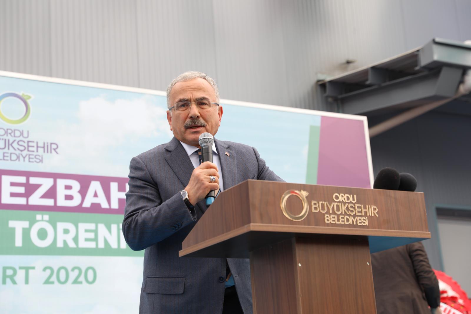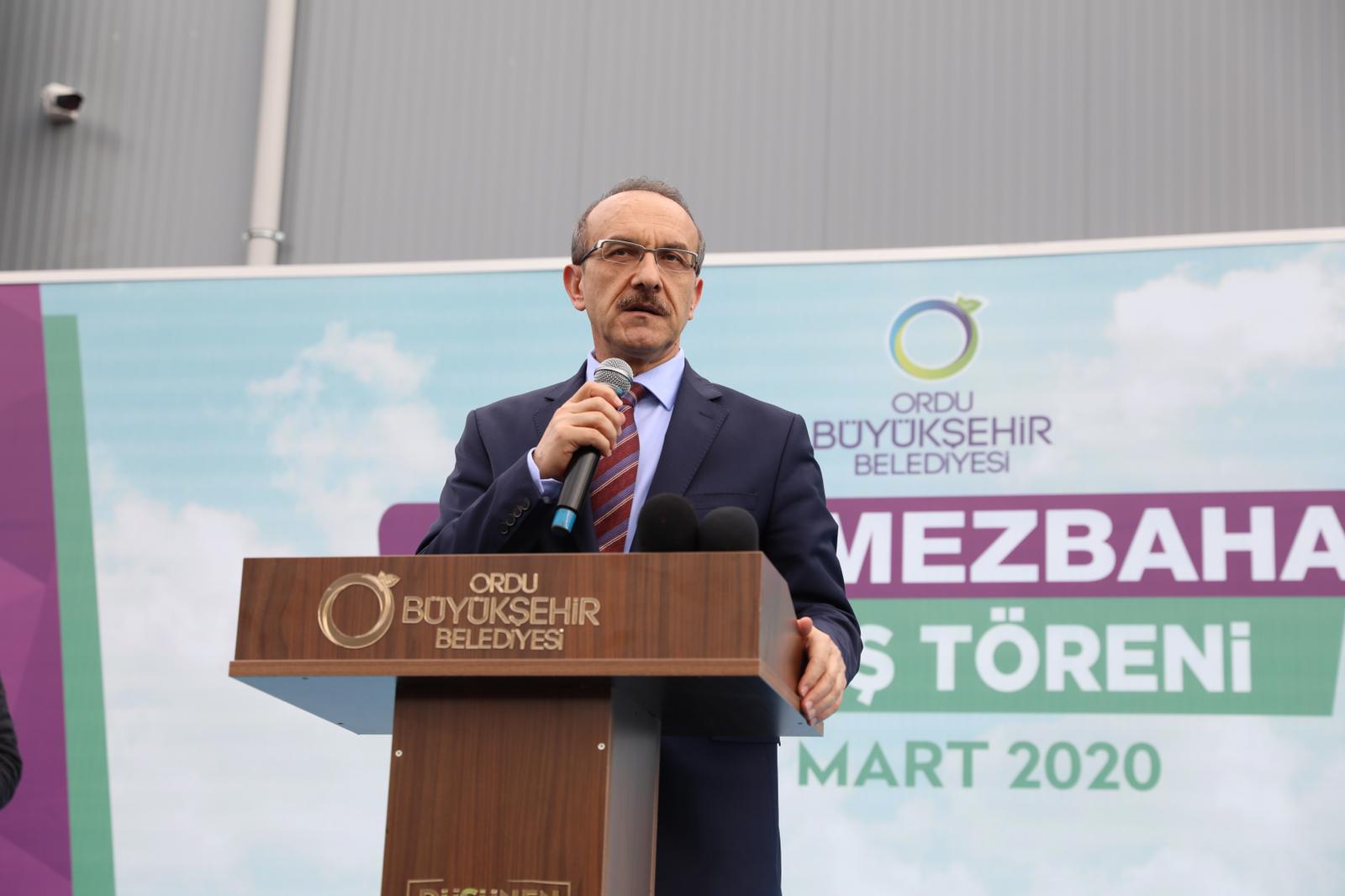 Avrupa Birliği normunda bir mezbahanın açıldığını ifade eden Ordu Büyükşehir Belediye Başkanı Dr. Mehmet Hilmi Güler, “Bugün burada Avrupa Birliği normunda son derece modern ve hijyenik bir tesisi açıyoruz. Ordu’nun mezbahaları vardı. Fakat bu şekilde kaliteli bir çalışma gerçekleşmemişti. Bundan önce emeği gecen tüm belediye başkanları ve yönetimine teşekkür ediyorum. Buranın epey bir eksikliği vardı. Devreye alınamama problemi vardı. Yoğun bir şekilde çalışarak mühendislik ve teknik bilgilerini uygulayarak tesisi açılacak duruma getirdik. Bu anlamda Fatsa çok büyük bir üstünlük kazandı. Bu mezbahayı sadece et kesimi yapılacak diye görmeyin. Bu tesisi entegre et ürünlerine çevirmemiz lazım. Hayvanın etinden, sütünden, kanından, işkembesinden yararlanmamız lazım. Bizim işimiz sadece asfalt, yol, çöp değil. Bu anlamda olaya daha büyük bakmamız lazım. Bu tesislerimizi diğer ilçelerimizde de yaymamız gerekiyor. Geleceğe de hizmet edecek tesisimizin açılış töreninde bulunmak benim için gurur verici bir durum. Bu hizmetlere bizi layık gördüğü için de Sayın Cumhurbaşkanımıza teşekkürlerimi sunuyorum. Tesisimizin Ordu’ya hayırlı olmasını diliyorum” dedi.