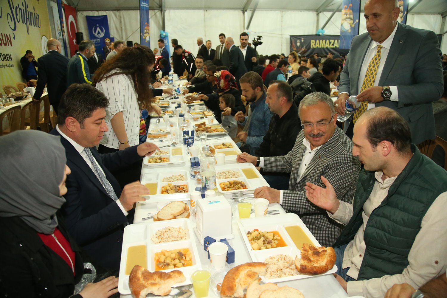 Yoğun geçen günün ardından Yönetim Kurulu Üyesi olduğu Turkcell’in sponsorluğunda düzenlenen iftar programına katılan Başkan Güler, halkla iç içe orucunu açtı. İftar çadırına gelen Ordu Büyükşehir Belediye Başkanı Dr. Mehmet Hilmi Güler; Altınordu Belediye Başkanı Aşkın Tören, AK Parti Altınordu İlçe Başkanı Dursun Kurucu ve Turkcell yöneticileri tarafından karşılandı. İftar alanındaki vatandaşlarla selamlaşan Başkan Güler, kendisi için protokol masası hazırlandığını görünce bir anda yönünü değiştirerek halkın arasında boş gördüğü ilk sandalyeye oturdu. Orucunu halkın içinde açan Başkan Güler, iftar sonrası onlarla sohbet etti ve fotoğraf çektirdi.