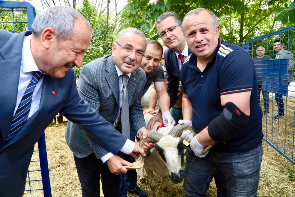 Başkan Güler, “Bugün burada bir sözümüzü daha gerçekleştiriyoruz. Vatandaşlarımıza hepsi damızlık ve özel seçilmiş 300 tane koyun 30 tane de koç dağıtıyoruz. Bunlarla tıpkı fındığın ilk başlangıcı gibi bir hareket başlatıyoruz. İlimizde meralarımızın azlığını söyleyebiliriz ama bizim fındık bahçelerimizin altı aslında meradır. 12 ay bu bahçeler koyunculukta, tavukçulukta, tarımda ikinci ve üçüncü üretimde kullanılabilecek. Bu açıdan fındık bahçelerimizin altını da düşüneceğiz. Aynı zamanda neler üretebileceğimizi düşüneceğiz” diye konuştu.