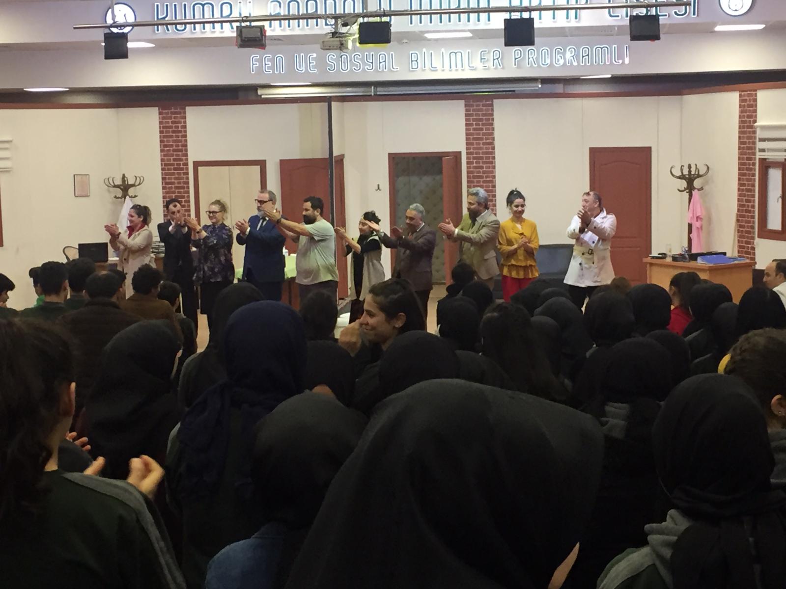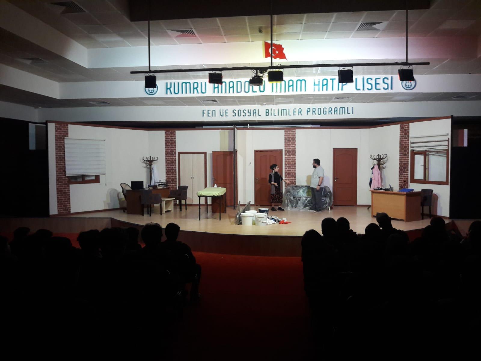 Sahneye koyduğu her oyunu daha fazla sanatsevere ulaştırmak için 19 ilçede gösterim yapan OBBKT, bu kapsamda Kumru ilçesinde öğrencilerle buluştu. Kumru İmam Hatip Lisesi konferans salonunda sahneye koyulan “Boyacı” oyunu öğrencilerden tam not aldı. Salonu dolduran öğrenciler tarafından kahkaha ile izlenen oyun sonrası, oyuncular ile öğrenciler hatıra fotoğrafı çektirdi