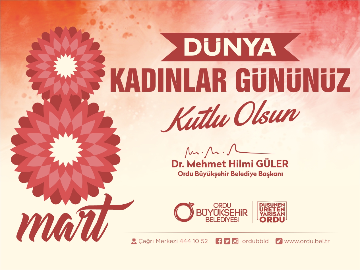 “8 Mart Dünya Kadınlar Günü” münasebetiyle bir mesaj yayınlayan Ordu Büyükşehir Belediye Başkanı Dr. M. Hilmi Güler, “Vatan toprağının korunması dahil dünden bugüne toplumsal hayatımızın, millet ve devlet yapımızın merkezinde yer alan, her şartta fedakarlıklarını esirgemeyen kadınlarımızın hayatın her alanında daha etkin olmaları için destek veriyor, onların her daim yanında olacağımızı yineliyorum” dedi.