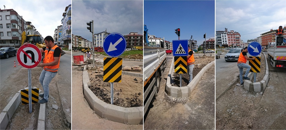 Ordu Büyükşehir Belediyesi tarafından Altınordu ilçe merkezinde hayata geçirilen kavşak düzenleme çalışmaları kapsamında uyarı levhalarının montajı yapıldı.