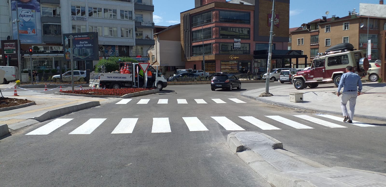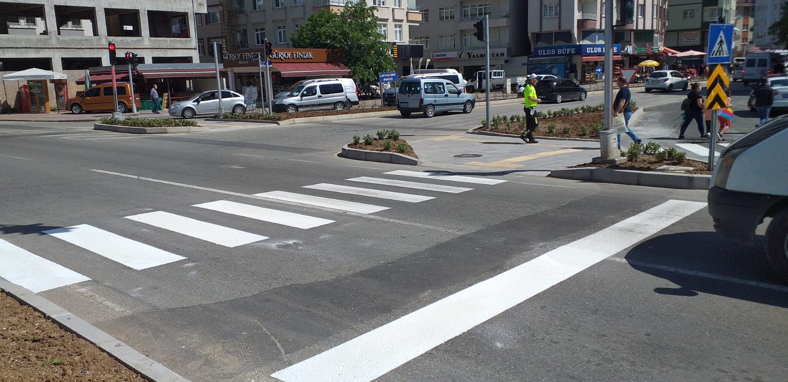 Ordu Büyükşehir Belediyesi, kentteki ana arterleri akıcı hale getirmek için başlattığı kavşak düzenleme çalışmalarına tüm hızıyla devam ediyor. Düzenleme kapsamında bir süre önce sıcak asfalt çalışması yapılan Rus Pazarı Kavşağı’na yaya geçidi, “önce yaya” logosu ve hız kesici çizgiler çizildi.