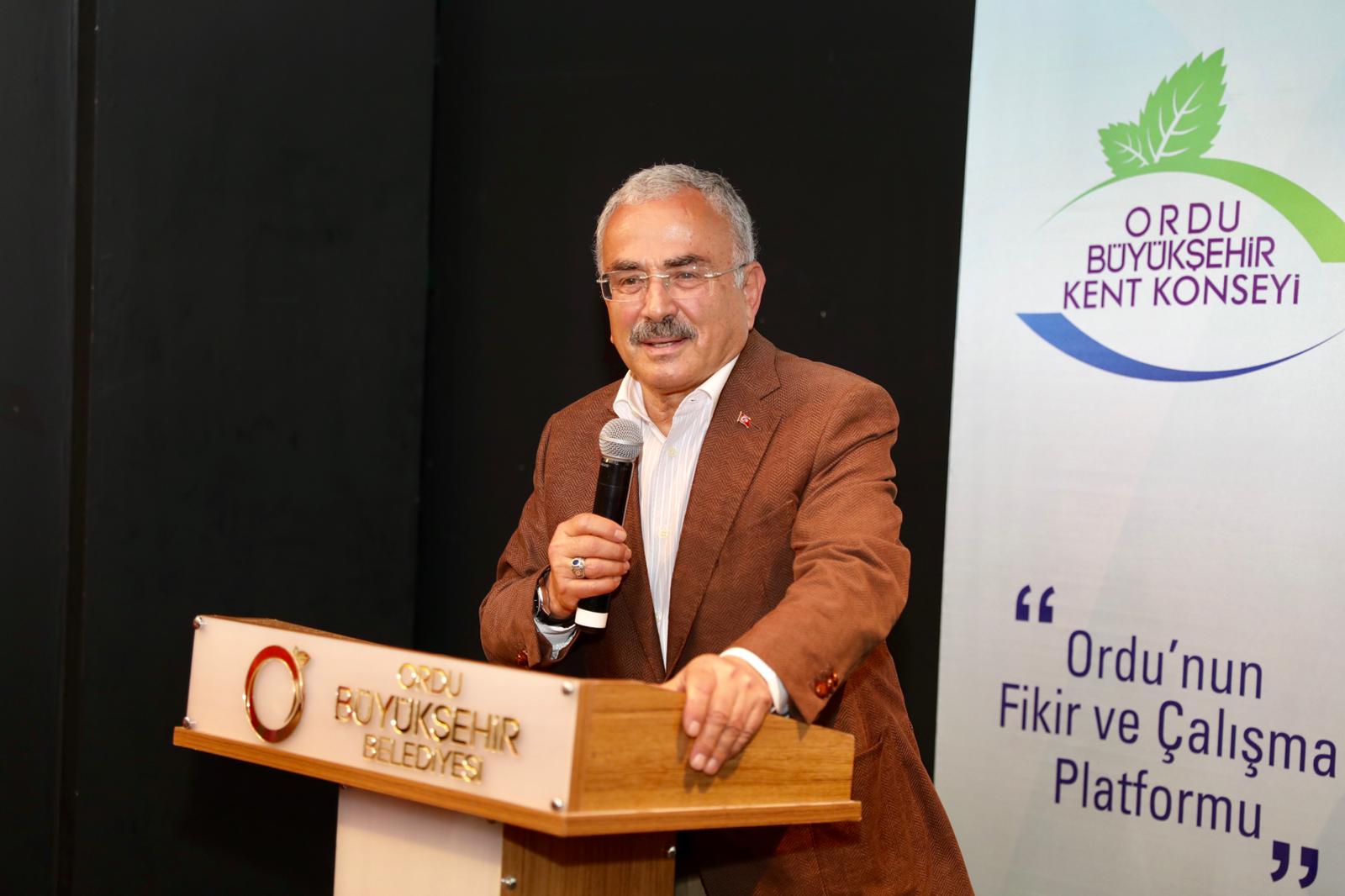 Asıl niyetinin geniş kapsamlı bir yönetim atmosferi oluşturmak istediğini kaydeden Ordu Büyükşehir Belediye Başkanı Dr. Mehmet Hilmi Güler, “Bugün burada çok önemli bir iş için bir araya geldik. Samimi bir açıklama ile söylemek isterim ki konseyin 15 kişi olmamalıdır. Bunun üzerinde de çalışma yapacağım. Herkesin fikrinin alınabileceği geniş kapsamlı bir grup oluştursak bundan ben daha çok memnun olacağım. Birlikte olacağımız süre içerisinde tarzımız geniş katılımlı, demokratik, şeffaf, sadece dinleyen değil aynı zamanda icracı bir kent konseyi olmasını istiyorum. Benim asıl niyetim dar bir çerçevede değil geniş kapsamlı bir yönetim atmosferi oluşturmak. Sadece genel kurulu temsil eden kişilerle de değil burada olmayanlarında katılacağı bir platform oluşturmak. Bunu gerçekleştirmek için elimden geleni yapacağım. İmkânı olan herkes buraya gelsin” dedi.