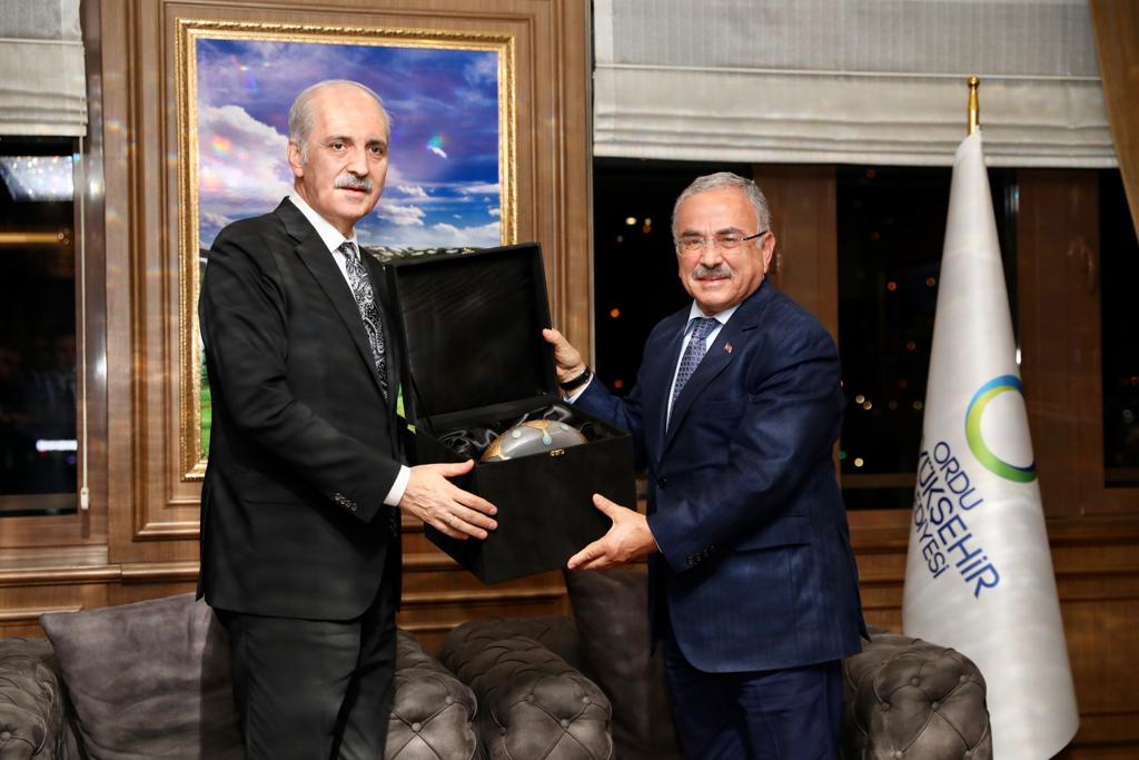 Ordu Büyükşehir Belediye Başkanı Dr. Mehmet Hilmi Güler, “Türk siyasetinin örnek kişiliği ve aynı zamanda bilim adamı olan Prof. Dr. Numan Kurtulmuş Bey’i belediyemizde ağırlıyoruz Genel Başkan Vekilimizi burada ağırlamanın mutluluğunu yaşıyoruz. Memleketimizde yaptığımız ve yapacak olduğumuz çalışmaları değerlendireceğiz. Kendisi memleketimizin çocuğu ve aynı zamanda örnek kişiliği ile hepimize rol model. Genel Başkan Vekilimiz Numan Bey Büyükşehir Belediyemize başından beri destek olduğu için başarılı bir seçim dönemi yaşadık. Siyasi kişiliği ile bizlere çok önemli destekleri oldu. Ordu’muzun örnek bir şehir olmaya yönelik çalışmalarını sürdürüyoruz. Yaptığımız çalışmalar ile taklit eden değil, taklit edilen bir şehir olacağız. Büyükşehir Belediyesi olarak güçlü bir teşkilat yapısına sahibiz. 1994 yılından bu yana Sayın Cumhurbaşkanımız ile birlikte çalışıyoruz. Belediyecilik bizde yeni başlayan bir serüven değil” şeklinde konuştu.