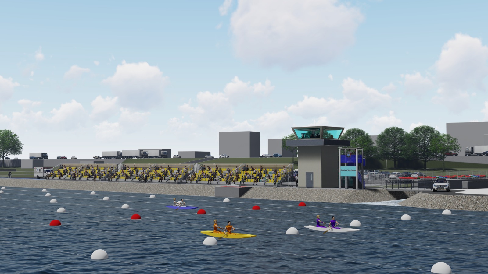 Proje kapsamında toplamda 400 kişilik tribün, 1 adet protokol locası, 1 adet foto finish kameralı yarış bitiş gözlem kulesi, 6 adet portatif yüzer iskele, 100 araçlık izleyici otopark alanı, 20 araçlık sporcu römork otopark alanı, 300 m² kayıkhane, 400 m² satış ve tanıtım alanı, 1.142 m araç ve bisiklet yolu, dere çıkışı üstüne bir geçiş köprüsü ve hakem ve sporcular için konaklama alanı oluşturulacak.