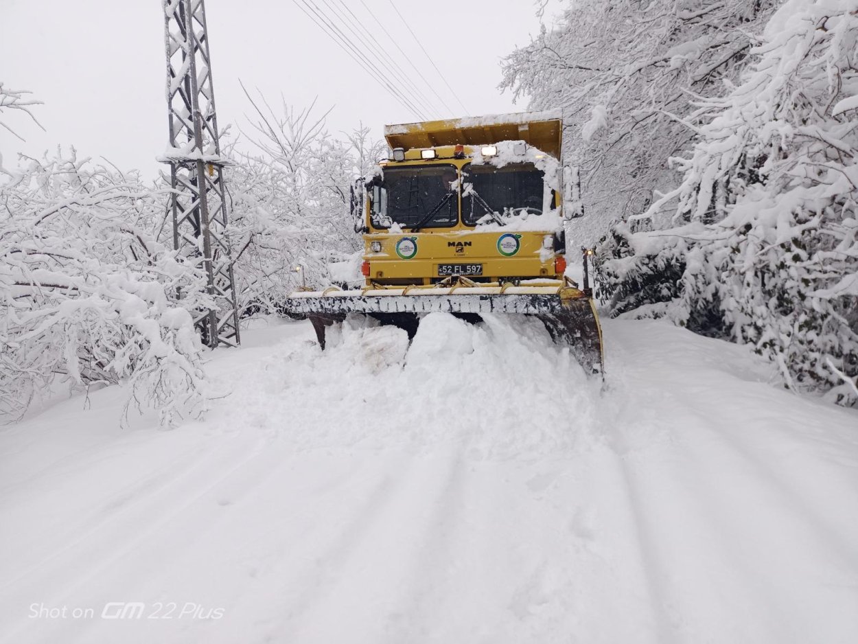 Meteoroloji Genel Müdürlüğü tarafından yapılan uyarılar sonrası dün akşam saatlerinde başlayan kar yağışı yüksek rakımlı ilçelerde etkili oldu. Altınordu ve Ulubey ilçelerinin yüksek kesimleri, Akkuş, Aybastı, Gürgentepe, Kabataş gibi ilçelerde kar kalınlığı 70 cm’ye ulaştı. Ortalama kar kalınlığının 45 cm’yi bulduğu il genelinde ulaşımda aksaklık yaşanmaması için ekip ve ekipmanlarını seferber eden Büyükşehir Belediyesi, bir günde 4 bin 157 km yolu ulaşıma açtı.