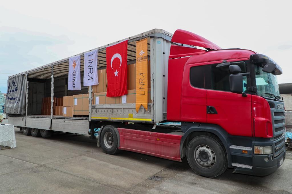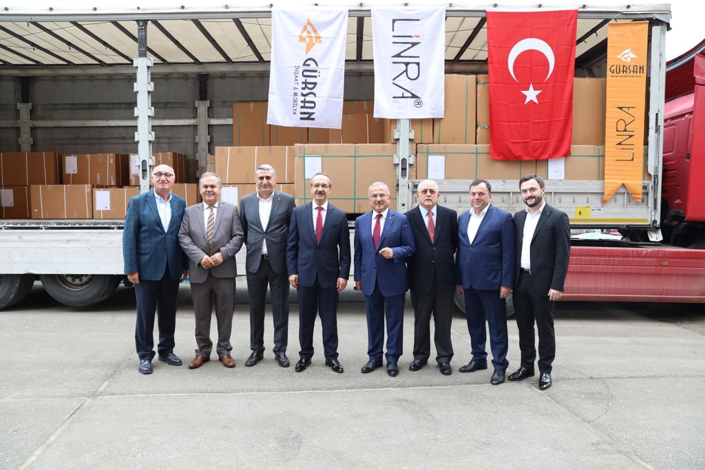 Gürsan firması tarafından üretilen 210 parça banyo dolabı, bugün düzenlenen törenin ardından Amerika Birleşik Devletleri’ne gönderildi. Firma, her ay 1.000 parça banyo mobilyasını düzenli olarak ABD’nin Virginia Eyaletine gönderecek.