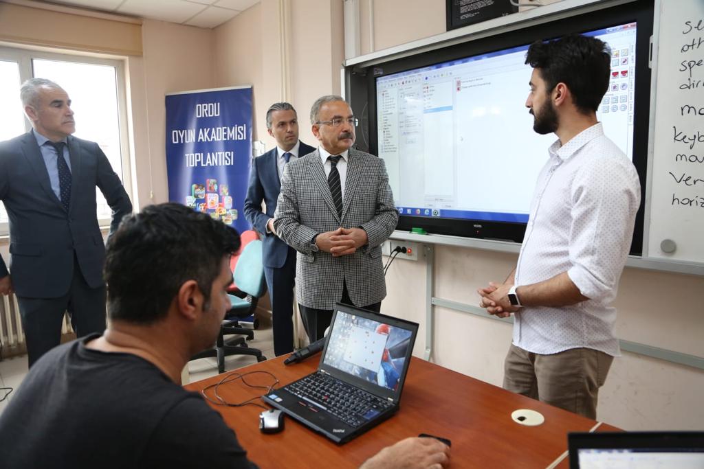 Ordu Büyükşehir Belediye Başkanı Dr. Mehmet Hilmi Güler, oyun akademisinde eğitimi yapılan dijital oyun sistemleri hakkında bilgiler aldı. Başkan Güler, burada kurs gören eğitimcilere yaptığı açıklamada, “Burada yükte hafif pahada ağır işlere ağırlık vererek sektör oluşturuyoruz. Ordu bir beyin takımı oluşturacak ve bu beyin takımı 1000 kişilik bir ekiple Türkiye’de başı çekecektir. Bizim tek gelirimiz fındık olmayacak beyin ürünleri, bilgisayar oyunları ile de dünyada da iyi bir oyuncu olacağız. Ordu bu anlamda iddialı bir ekip olacaktır. Sayılar artacak ve ağustos sonunda harikulade güzel bir ekip çıkacak diye düşünüyorum. Bu takım inşallah Ordu’nun geleceğini yazacak. Şimdiden hepinizi tebrik ediyorum. Ne gerekiyorsa onu sağlayacağız. Bundan sonraki etapta ilçelerdeki beyinleri seçip onlardan da bir takım oluşturacağız” dedi.