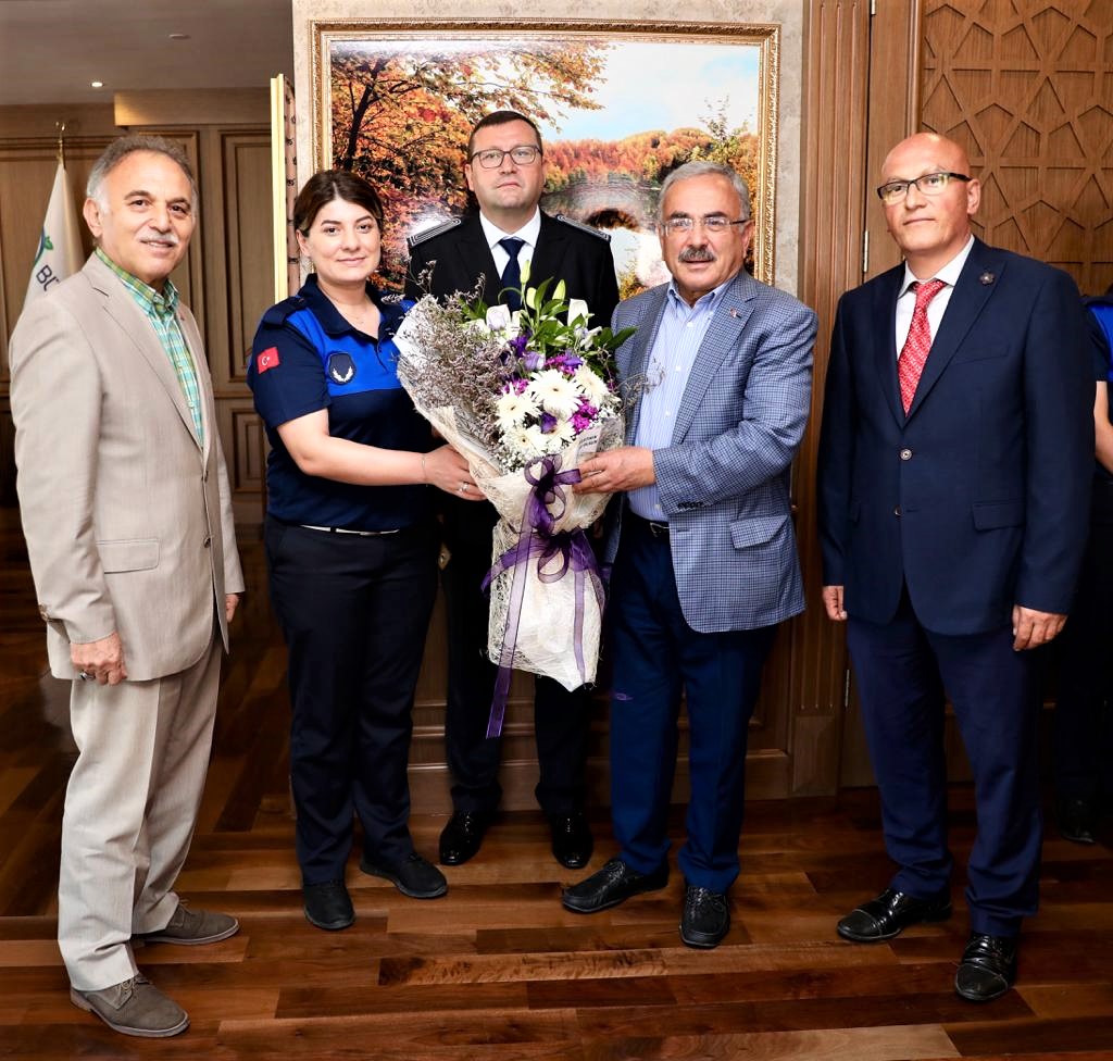 Ordu Büyükşehir Belediyesi Zabıta Daire Başkanı Cevdet Çağlar ve Zabıta Personeli Başkan Güler’i makamında ziyaret ettiler. 1-7 Eylül tarihleri arasında kutlanan Zabıta Haftası nedeniyle gerçekleşen ziyarette konuşan Ordu Büyükşehir Belediye Başkanı Dr. Mehmet Hilmi Güler, zabıtaların belediyelerin halkla doğrudan teması, bir anlamda belediyenin yüzü olduğuna dikkat çekti.