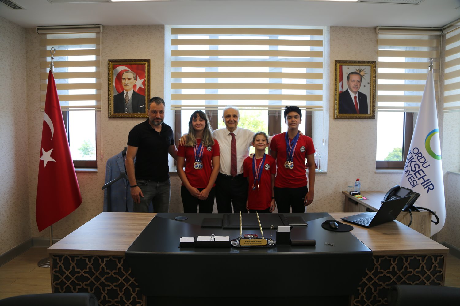 Su sporları branşında ilimizi temsil eden Ordu Yüzme İhtisas Kulübü teknik heyet ve sporcuları Genel Sekreter Yardımcısı Ali Erdal Güldüren’i makamında ziyaret etti.