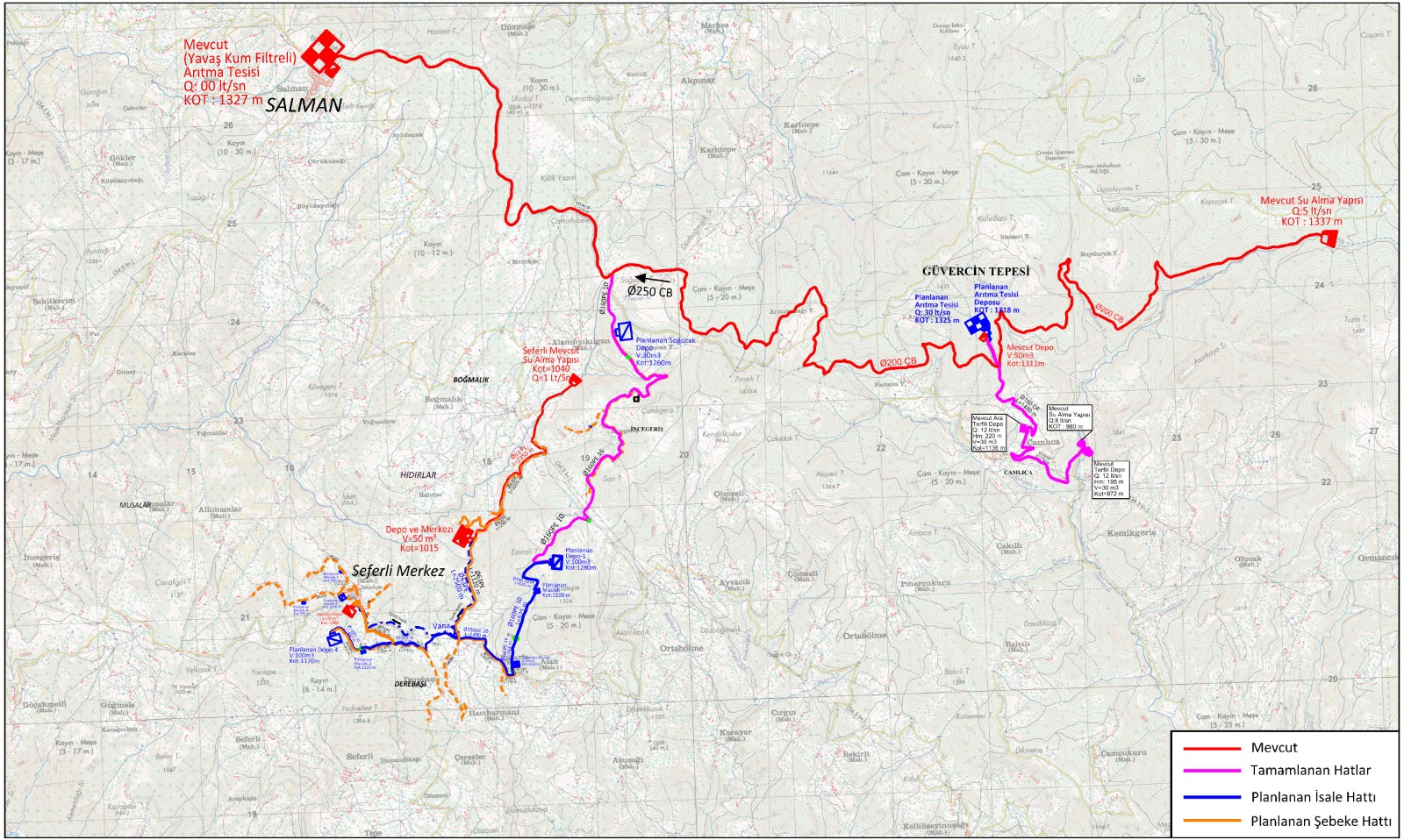 Ekipler Seferli Mahallesine sağlıklı ve düzenli bir içme suyu sistemi kurmak için yatırımlarını sürdürüyor. İlk etapta 5.000 metre isale hattının yapımını tamamlayan ekipler, bölgeye şebeke hatlarıyla birlikte 9.500 metre daha içme suyu hattı yapılması için çalışmalara başladı. Mevsim şartlarının elverdiği ölçüde sahada kazı ve boru döşeme çalışmalarını hızlı bir şekilde sürdüren ekipler 3.500 metre hattın imalatını tamamladı. İçme suyu hatlarıyla birlikte bölgeye 1 adet 100 m3 ve 1 adet 50 m3 içme suyu deposunun yapılması planlanıyor.