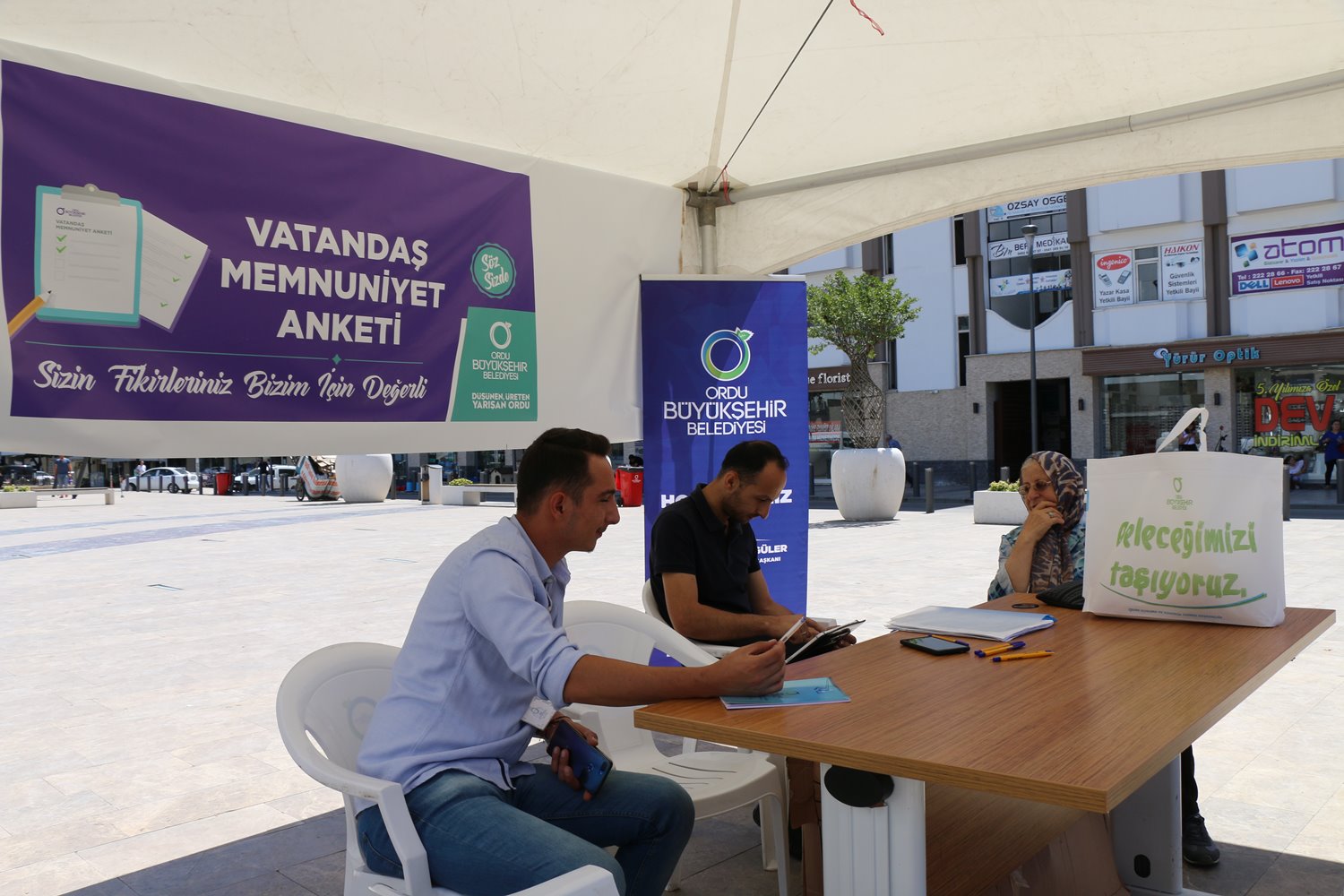 Köprübaşı Meydanı’nda stant açan Ordu Büyükşehir Belediyesi “Vatandaş Memnuniyet Anketi”nin ardından yapılacak değerlendirmelerle sorunlara karşı yenilikçi çözümler üretmeyi hedefliyor.