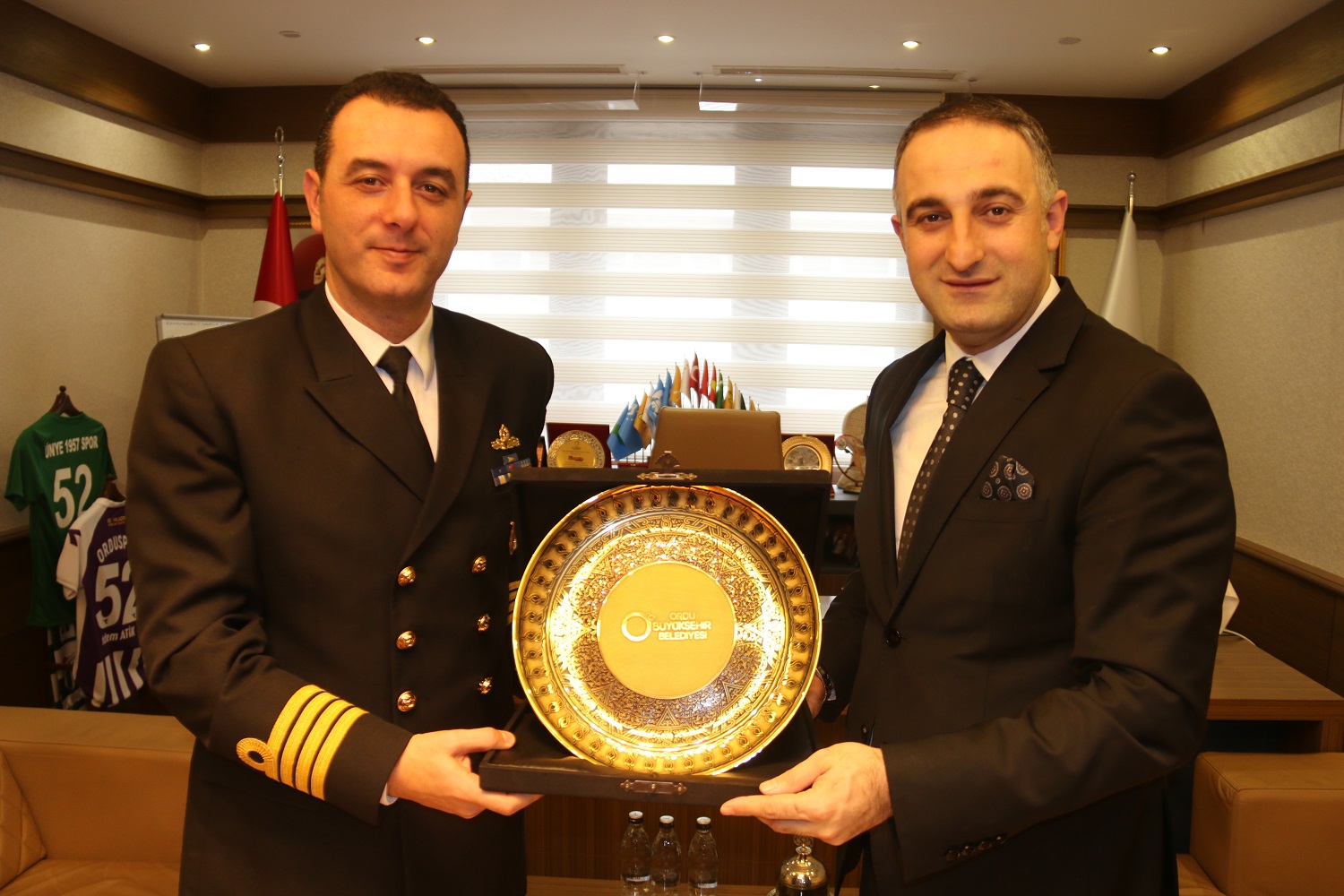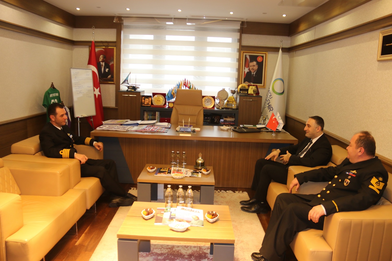 Karadeniz Uyum Harekâtı kapsamında ilimizi ziyaret eden TCG FATİH (F-242) Askeri Gemi Komutanı Deniz Yarbay Levent Barbak ve Sey. Asb.Kd.Bçvş. Hakan Civil Ordu Büyükşehir Belediyesi Başkan Vekili Adem Atik’i makamında ziyaret etti.