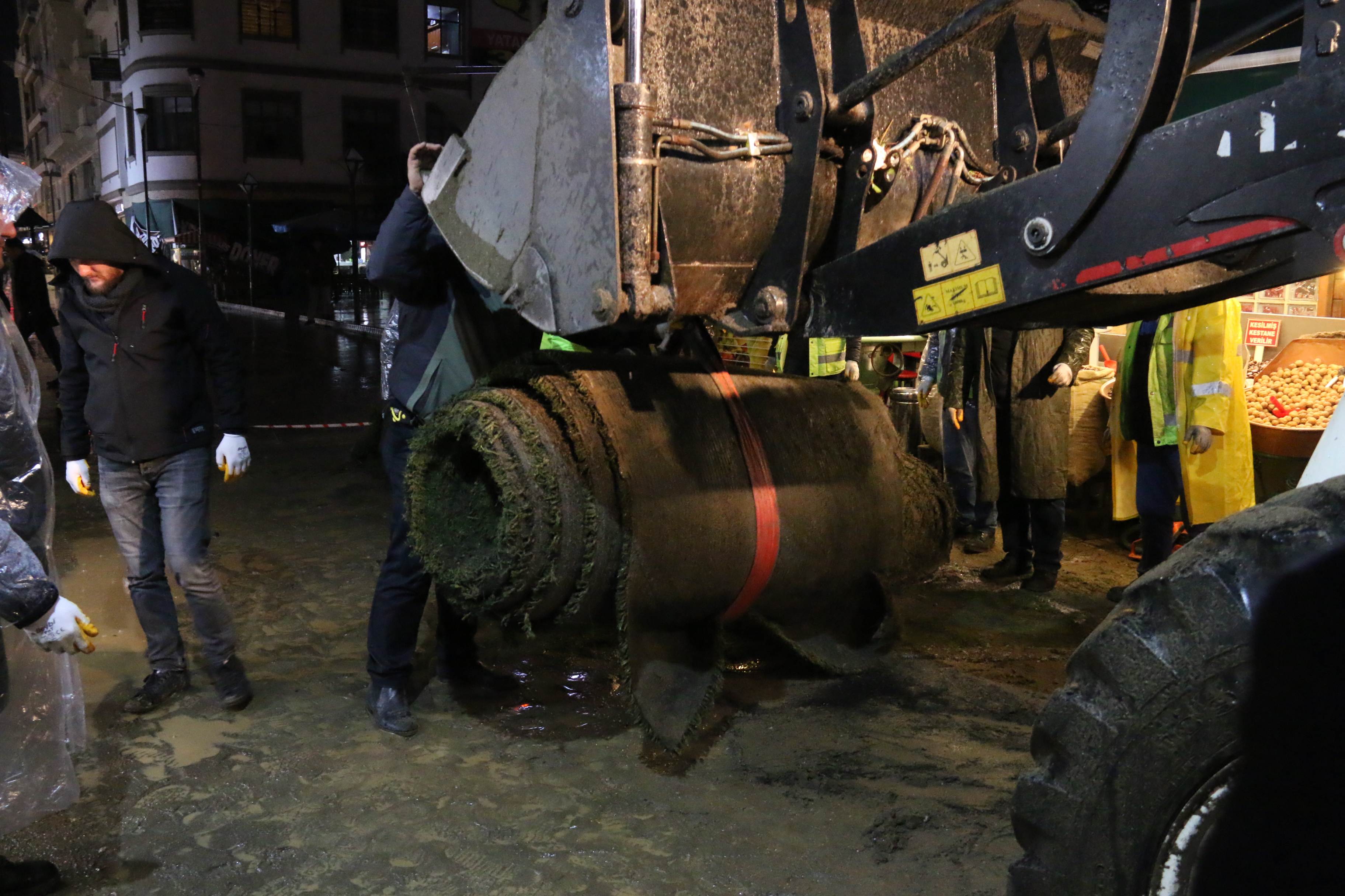 Genel Sekreter Yardımcısı Bülent Şişman, “Halkımızın bir gün dahi çamura batmasına gönlümüz razı değildi. Onun için kullanılmayan sahalardaki halıları sökerek caddeye döşemeye karar verdik. İnşallah önümüzdeki hafta vatandaşlar burada çamur sorunu yaşamayacak” dedi.