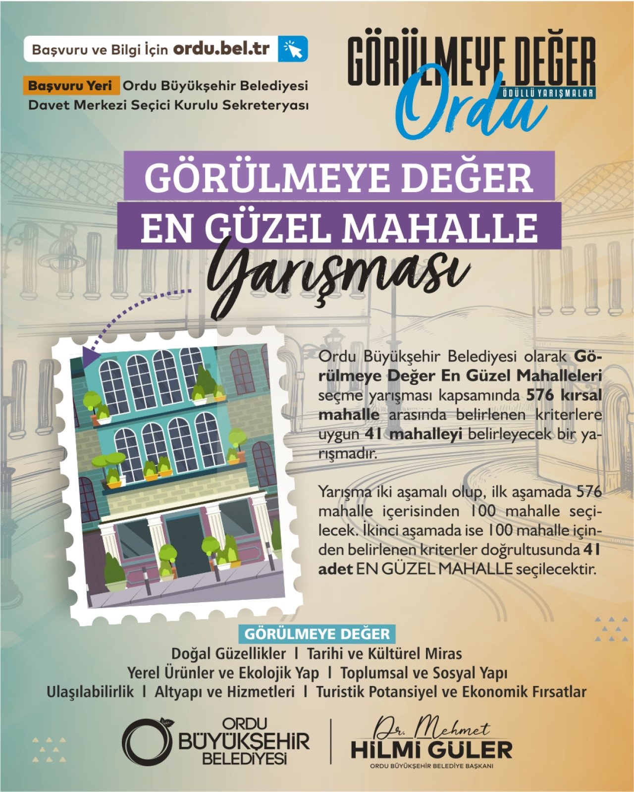 Görülmeye değer kavramı bir coğrafyanın ya da bir kişinin davranış, duygu ve düşüncelerini yönlendiren, güzellik, kıymet ve iyilik standartları olarak değerlendirilmektedir. Bu kapsamda planlanan yarışmada ana konu da Ordu Büyükşehir Belediyemizin |Düşünen-Üreten-Yarışan Ordu| sloganı çerçevesinde mahallelerimizin, sokaklarımızın ve adeta sokaklara açılan balkonlarımızın güzelliklerini değerlendirip ölçerek görülmeye değer en güzelini seçmeyi konu edinmiştir.