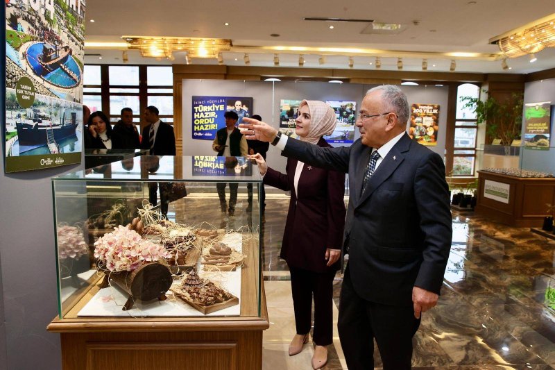 Bakan Göktaş, Ordu Valiliği ziyareti ardından Ordu Büyükşehir Belediyesini ziyaret etti. Başkan Dr. Mehmet Hilmi Güler ve protokol ekibi tarafından karşılanan Bakan Göktaş, OBB bünyesindeki tesislerde üretilen ürünler, teknik çalışmaların örneklerinin bulunduğu ve gerçekleştirilen yatırımların tanıtımının yapıldığı fuaye alanını Başkan Güler ile birlikte gezdi. Aile ve Sosyal Hizmetler Bakanı Mahinur Özdemir Göktaş, yatırım ve çalışmaları merak ve ilgi ile dinledi.