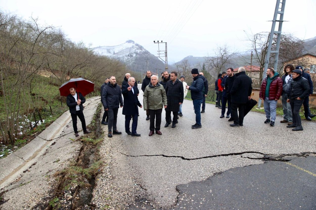 “3-4 gündür hiç durmadan devam eden yağmur ve kar nedeniyle heyelanlar meydana geldi. Burası bentonit yataklarının da olduğu killi bir arazi yapısına sahip. 30 metre kayma meydana geldi. Bütün halkımıza geçmiş olsun dileklerimizi iletiyoruz. Bütün tedbirleri aldık ama daha köklü tedbirler için de çalışmalar yapacağız. Durumu AFAD’a da bildirdik. Can kaybı olmaması en büyük tesellimiz. Burası tamamen araç ve yaya trafiğine kapatıldı. İnşallah üstesinden geleceğiz. Yağmur yağışının durmasıyla alanı tekrar etüt edeceğiz. Tekrar geçmiş olsun dileklerimi iletiyorum.”