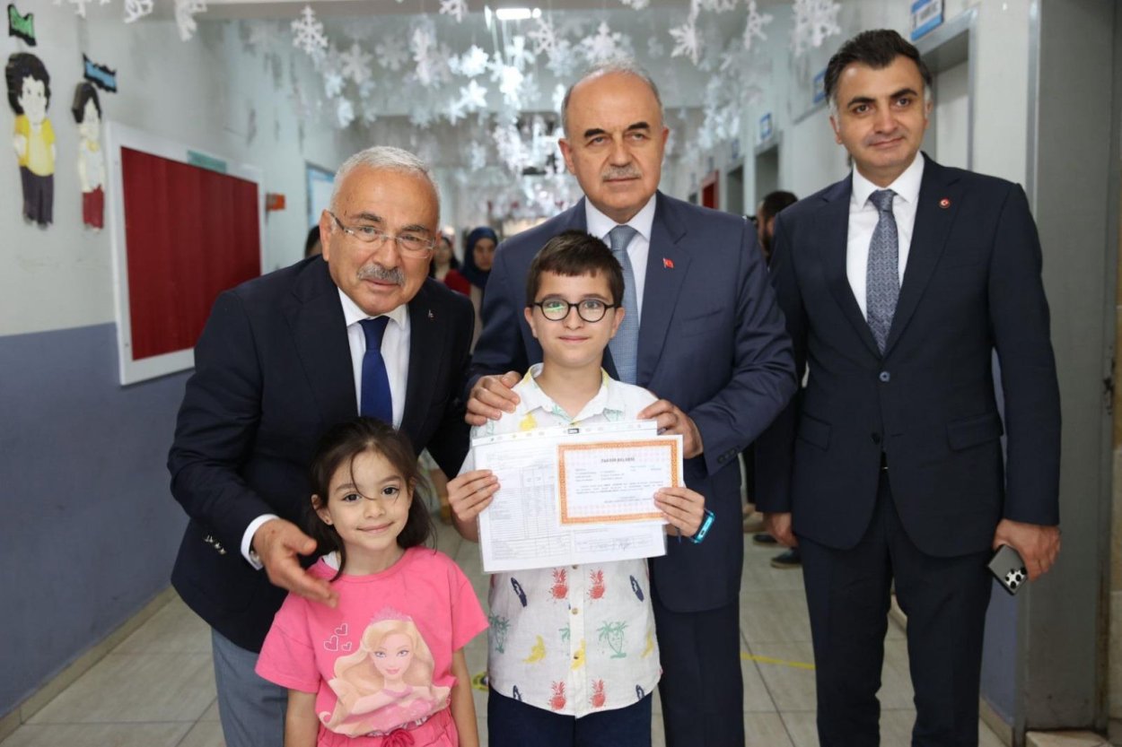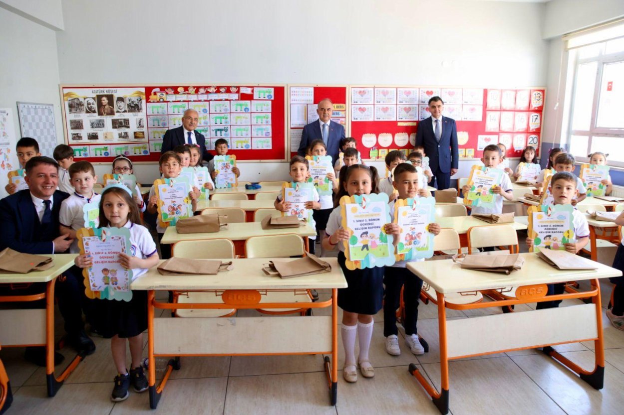 Kapıda öğrenciler tarafından çiçekle karşılanan Ordu Valisi Muammer Erol ve Ordu Büyükşehir Belediye Başkanı Dr. Mehmet Hilmi Güler, minik öğrencilere karnelerini dağıttı. Karnelerini alan çocuklar büyük sevinç yaşadı. Başkan Güler, karne sevinci yaşayan çocuklarla sohbet ederek heyecanlarına ortak oldu.