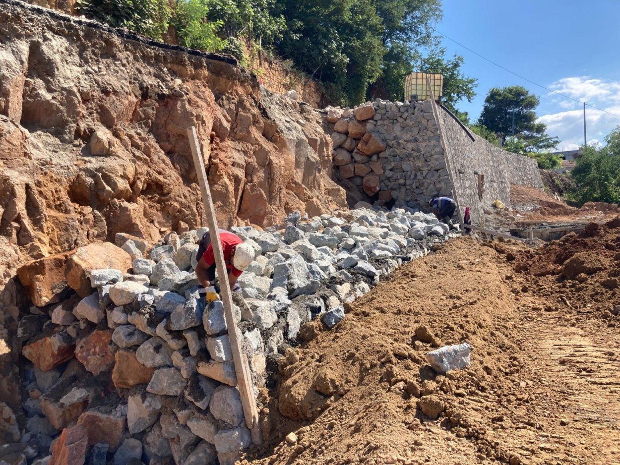 Ordu Büyükşehir Belediyesi Fatsa ilçesinde taş duvar çalışması gerçekleştiriyor.