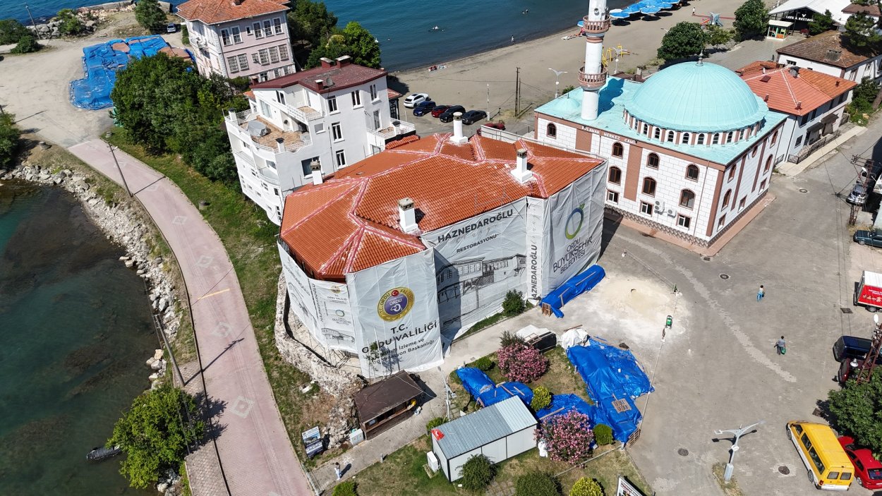 Kent müzesi olarak kullanılmak üzere Ordu Üniversitesi ile imzalanan protokol gereğince 12 yıllığına Ordu Büyükşehir Belediyesine tahsis edilen ve restorasyon çalışmaları kapsamında çatı imalatı tamamlanan Haznedaroğlu Konağı adım adım yenilenerek geleceğe taşınıyor.