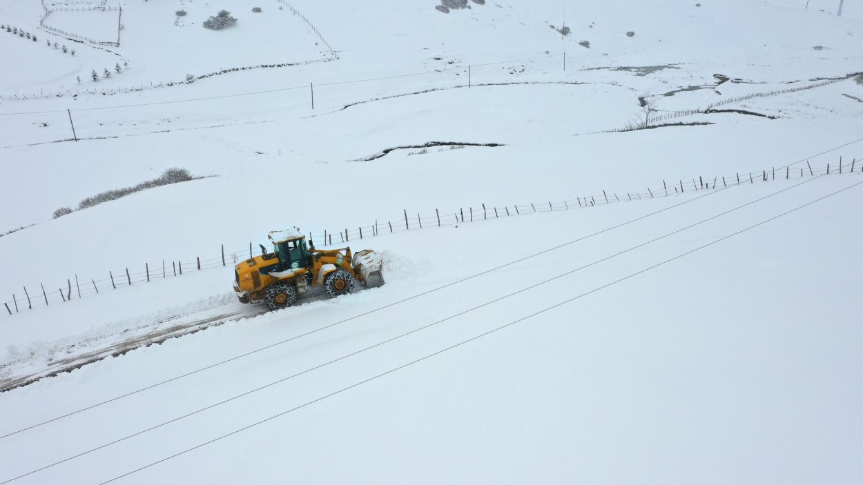 Nisan ayında yağan kar yağışıyla vatandaşların ulaşımda aksaklık yaşaması için sıkı bir çalışma sergileyen ekipler yolların kapanmasının önüne geçmek amacıyla kar küreme, buzlanmaya karşı da tuzlama işlemi yürütüyor.