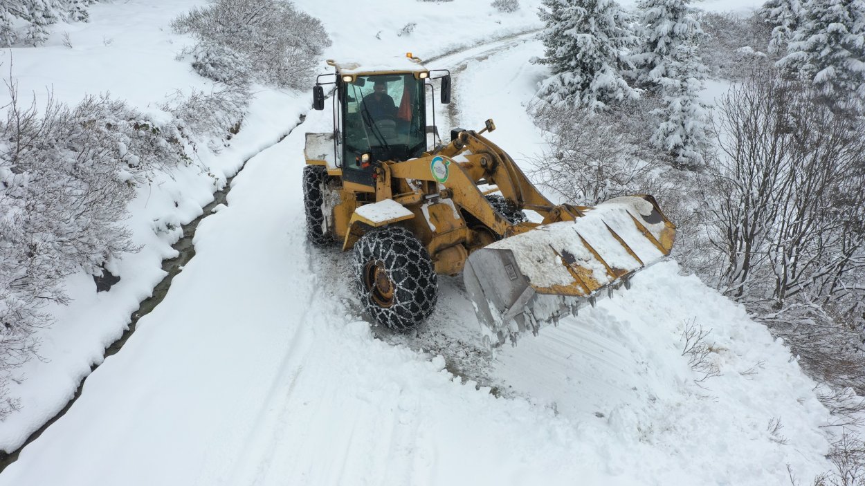 Ordu Büyükşehir Belediyesi ekipleri kırsal mahallelerde 124 araç ve iş makinesi, 163 personelle karla mücadele çalışmalarını sürdürüyor.